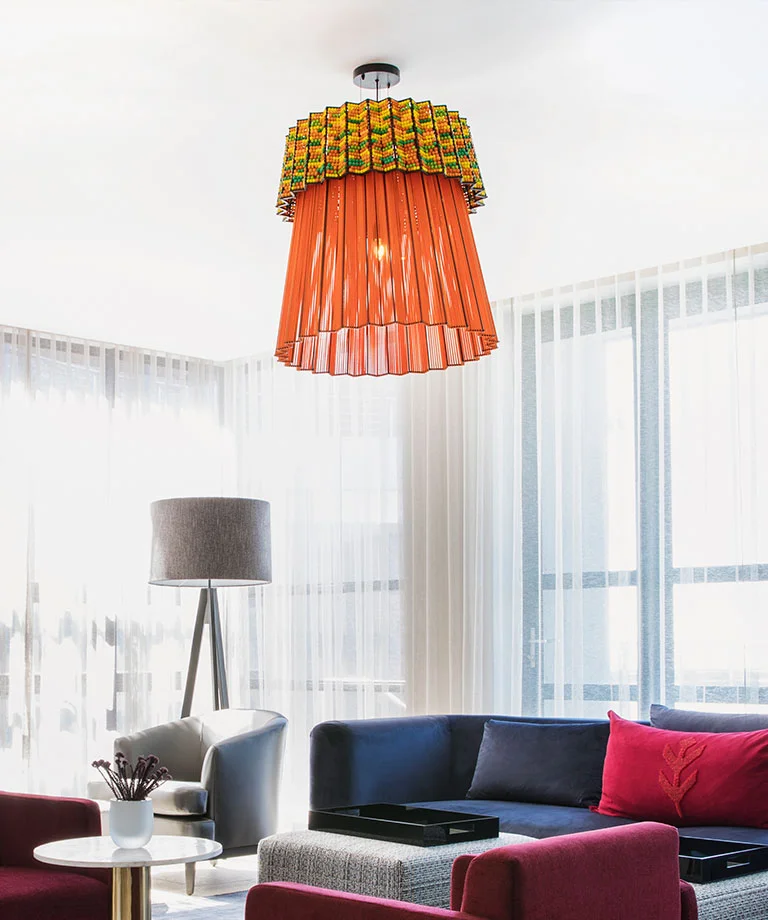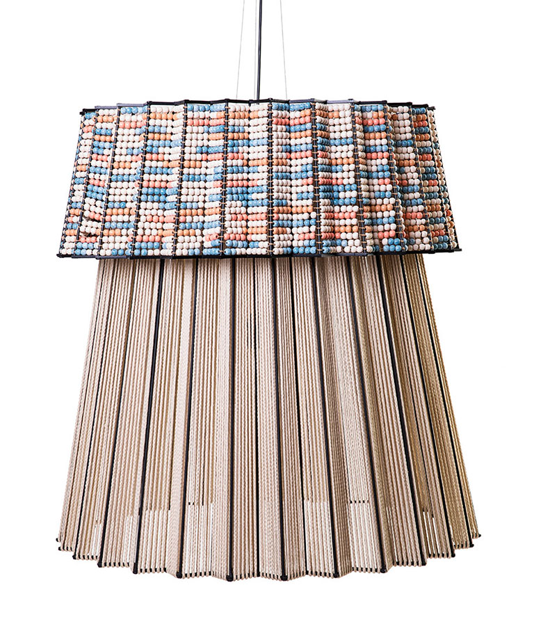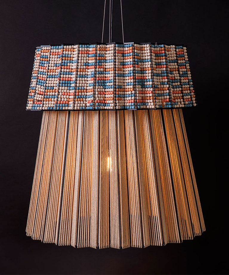 A striking fusion of craft-driven design and contemporary aesthetics, this handcrafted statement piece is made from high-quality materials, including sustainably sourced wooden beads and durable, powder-coated mild steel. Designed for both visual impact and longevity, it seamlessly blends traditional craftsmanship with modern functionality.