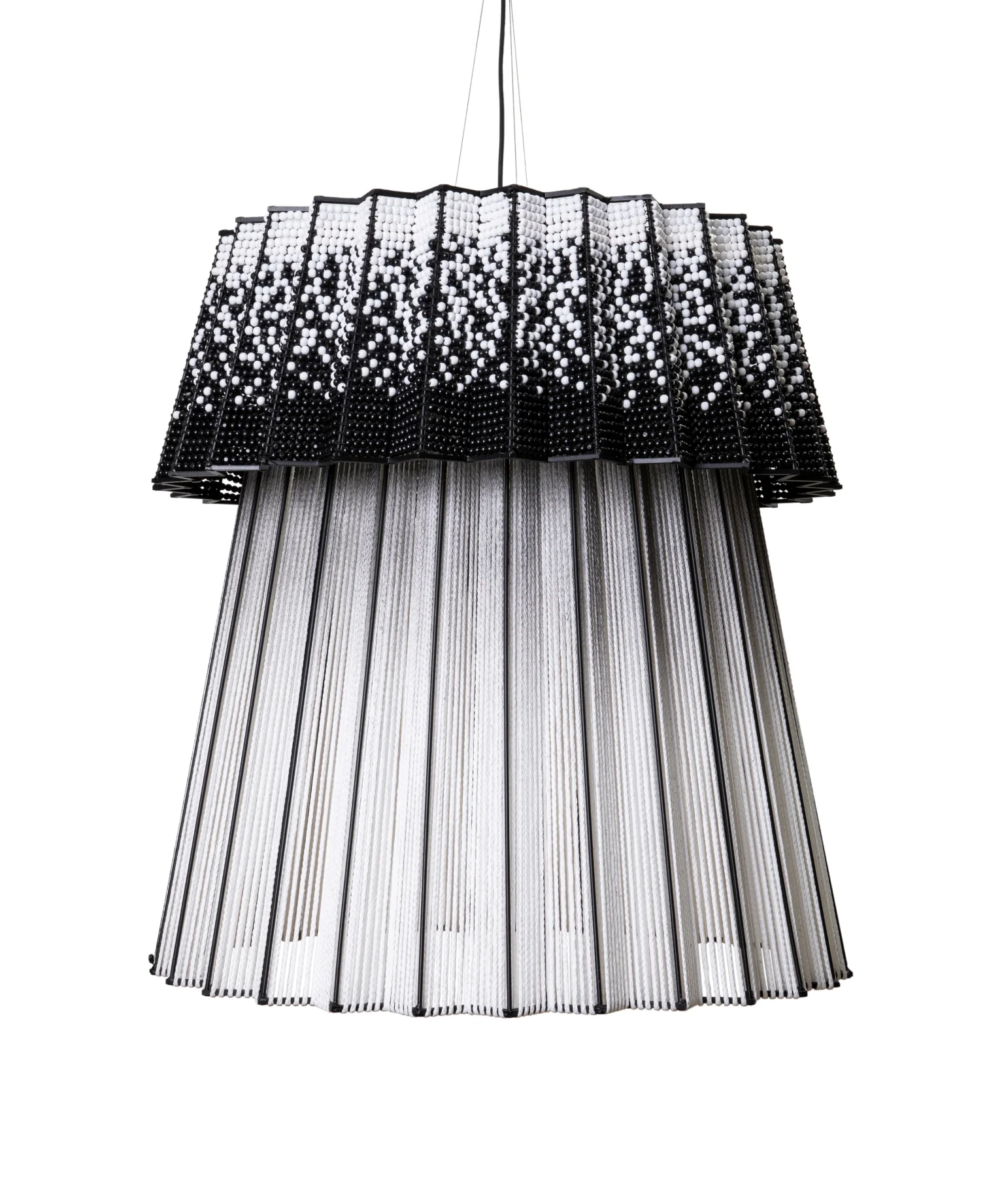 A striking fusion of craft-driven design and contemporary aesthetics, this handcrafted statement piece is made from high-quality materials, including sustainably sourced wooden beads and durable, powder-coated mild steel. Designed for both visual impact and longevity, it seamlessly blends traditional craftsmanship with modern functionality.